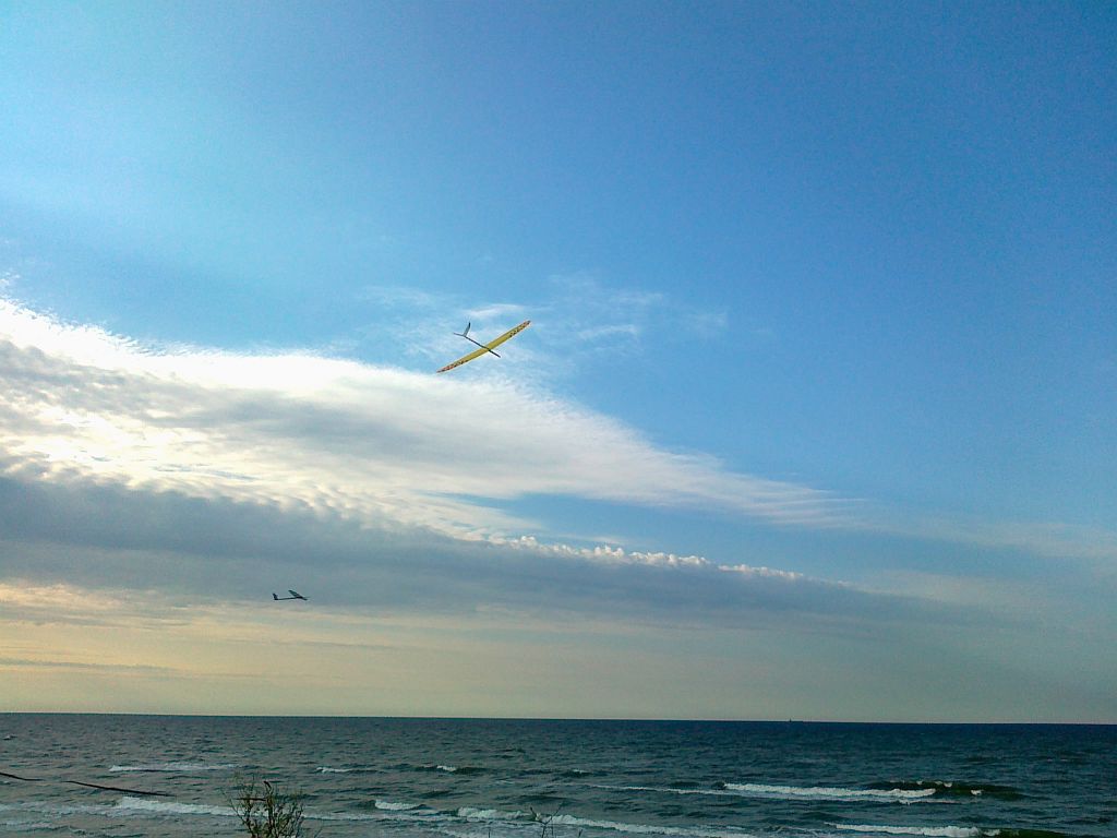 Deň 2 : o 9,30 zraz na Klife, rozložené bázy, meracie zariadenia, takmer sme začali skladať modely, no po briefingu bolo oznámené, že sa ide na iný klif cca 46km vzdialený. Dôvod opäť severný smer vetra. Nasledoval presun a o 12,00hod. prvý štart na 4metrovej hrane. Sila vetra 4-5m/s postupne klesala a keď som bol na štarte ja bolo prerušené kolo, pre vietor pod 3m/s. Postupne vietor zosilnel na 6-7m/s, lietanie na tomto klife veľmi znepríjemňovala borovica, ktorá rástla asi 60cm za hranou a svojimi konármi siahla až na pláž. Niekoľko modelov skončilo v nej a niektoré v ďalších stromoch za ňou. Ani na tomto klife nebol vietor počas celého dňa rovnaký, menil silu aj smer, tak sa menili aj časy. Pristávanie na pieskovej pláži bolo veľmi príjemné. A musím povedať, že nebyť tých stromov rastúcich priamo v ideálnej stope letu, bolo by to veľmi dobré lietanie v krásnom prostredí.